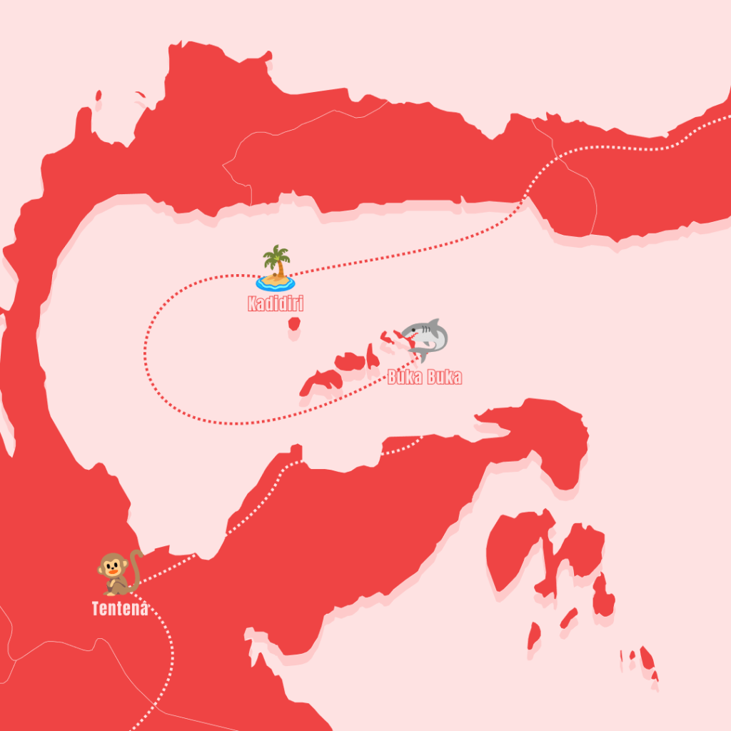 Prix : 900K pour le trajet Tentena-Ampana + 300K pour le bateau vers BukaBuka