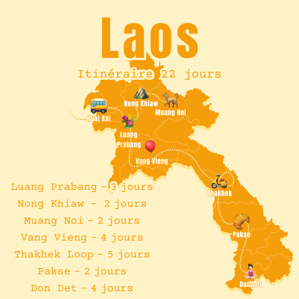 Le Laos, joyau de l’Asie du Sud-Est, pays aux paysages enchanteurs, marqué par ses montagnes verdoyantes et le Mékong majestueux. Idéal pour les voyageurs en quête d’authenticité, le Laos a été un vrai coup de coeur pour nous !