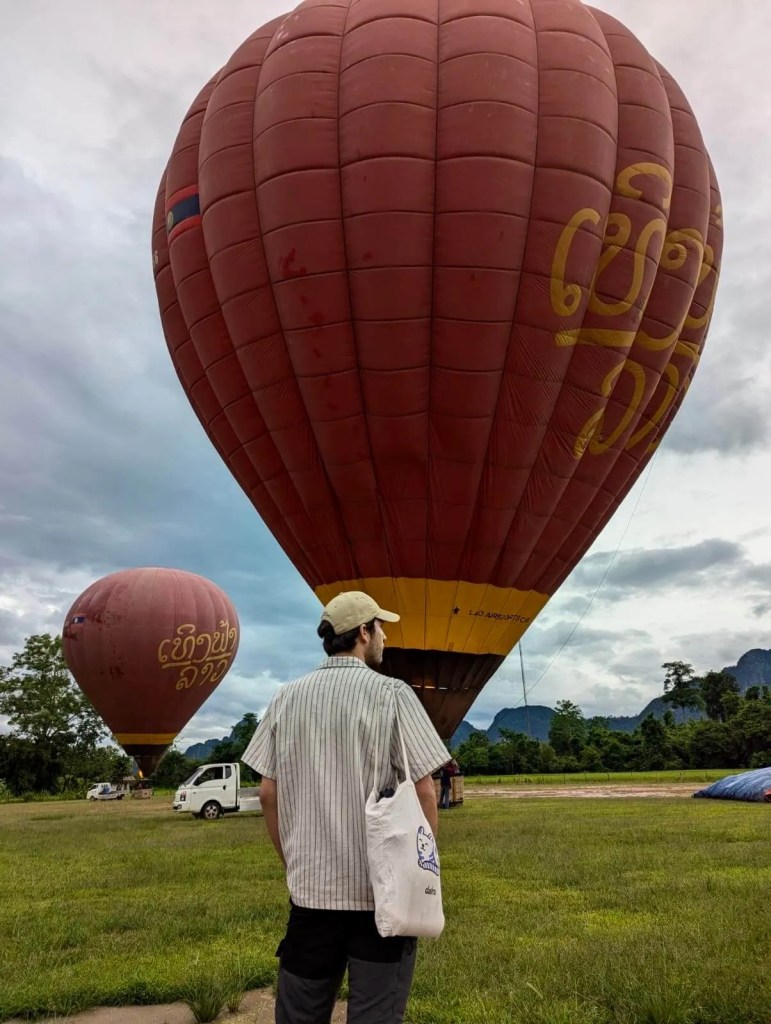 Avec Above Laos Balloon. DĂ©part Ă 5h30 si le temps le permet. Nous avons eu notre dĂ©part retardĂ© Ă 6h30 car il pleuvait beaucoup. Pickup Ă lâhĂŽtel, petits snacks et cafĂ© avec explications sur le vol en montgolfiĂšre. Ils montent la nacelle et gonfle la montgolfiĂšre devant vous. Le vol dure entre 35min et 1h en fonction du vent et des conditions mĂ©tĂ©o. Puis, on a droit Ă un vrai petit-dĂ©jeuner et mĂȘme Ă un verre de champagne pour fĂȘter ça ! (oui, Ă 9h30 du matin đ€) Il y a sĂ»rement des agences un peu moins chĂšres dans la ville mais celle-ci Ă©tait vraiment trĂšs pro du dĂ©but Ă la fin ! On recommande !