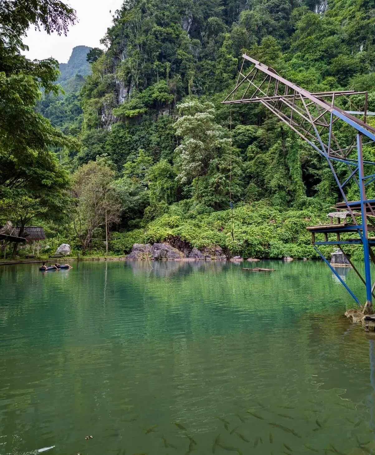 A une quarantaine de minutes de la ville, la route se complique juste sur les 5 derniĂšres minutes donc câest largement faisable en scooter ! Joli bassin avec des infrastructures tout autour pour se poser. Tyrolienne et corde tarzan pour entrer dans lâeau. Il y a Ă©galement un restaurant ! Nous sommes Ă©galement allĂ© Ă la grotte et au viewpoint inclus dans lâentrĂ©e du lagoon.