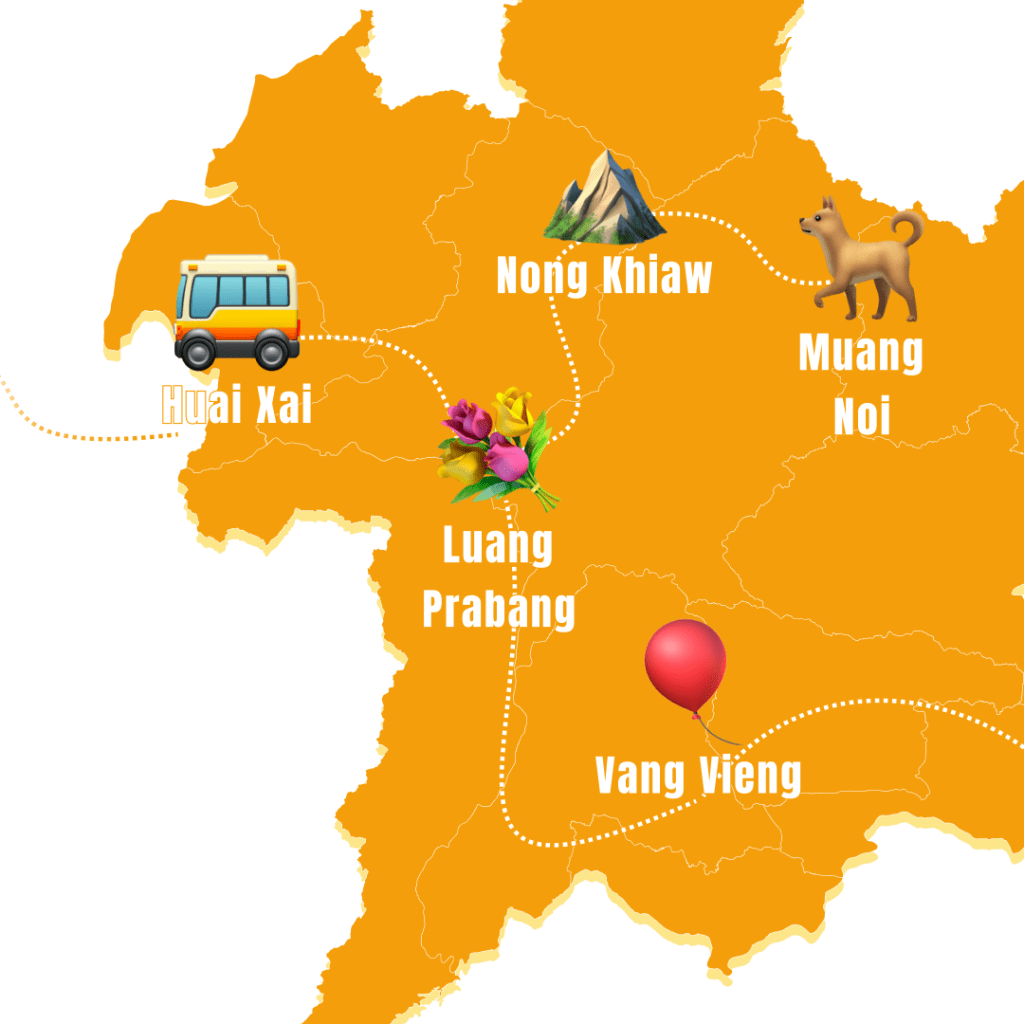 Depuis Chiang Mai (ThaĂŻlande) : minivan jusquâĂ la frontiĂšre (~ 5h), passage frontiĂšre puis bus de nuit (17h) de Houai Xai Ă Luang Prabang (ou slow boat pendant 2 jours).