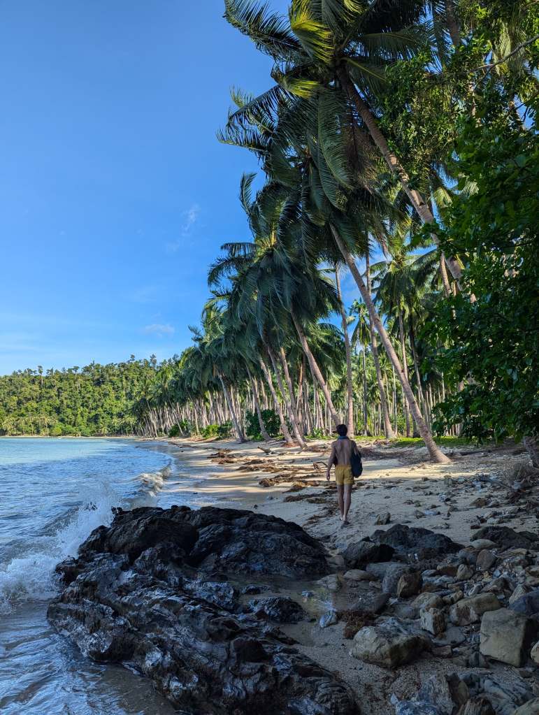 Sinon il yâa un chemin aussi dans les terres (10min de marche). Plage trĂšs paisible et rempli de palmiers (comme son nom lâindique).
