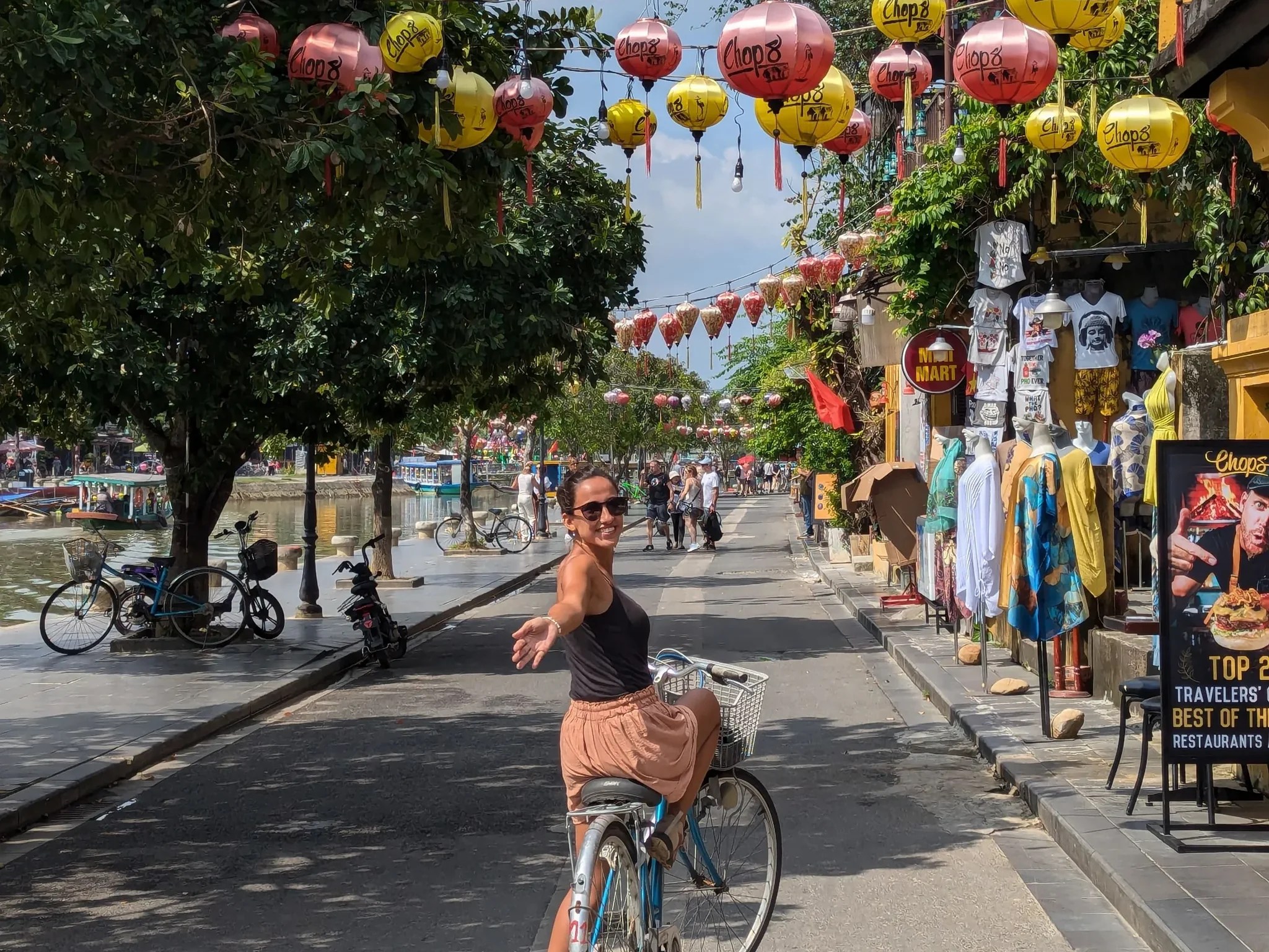 Nous avons louĂ© des vĂ©los directement avec notre hĂ©bergement et nous nous sommes baladĂ© jusquâau village de poterie. EntrĂ©e payante, vous pouvez ensuite vous arrĂȘter dans un des shops et tester le tournage en poterie. Vous repartez avec votre Ćuvre dâart et il faut juste acheter un petit souvenir Ă la boutique en guide de âpaiementâ. Nous nous sommes Ă©galement baladĂ© jusquâau TrĂ NhiĂȘu Eco Village (village de tissage) mais nous ne sommes pas tombĂ© sur des activitĂ©s Ă faire. Pour y aller, vous passez par des jolis petits villages et de superbes riziĂšres (Cam Kim Rice Fields)