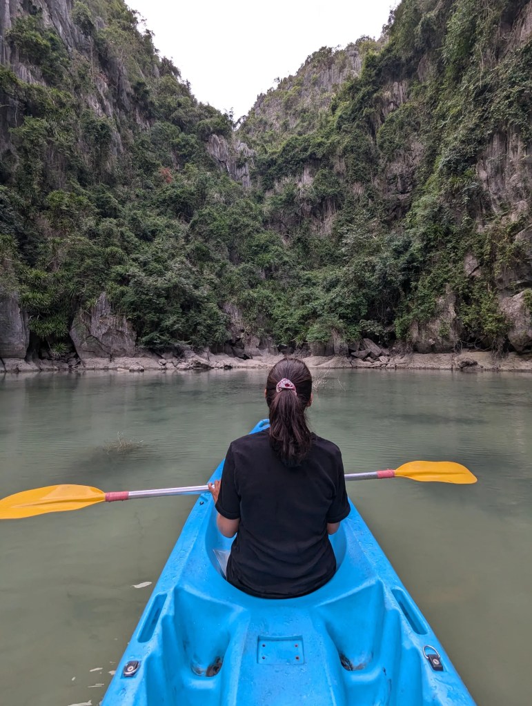 Au programme : navigation avec vues imprenables et quasiment seuls, baignade, Kayak, vélo jusqu’à un petit village sur Cat Ba. Bref, nous avons adoré notre croisière !